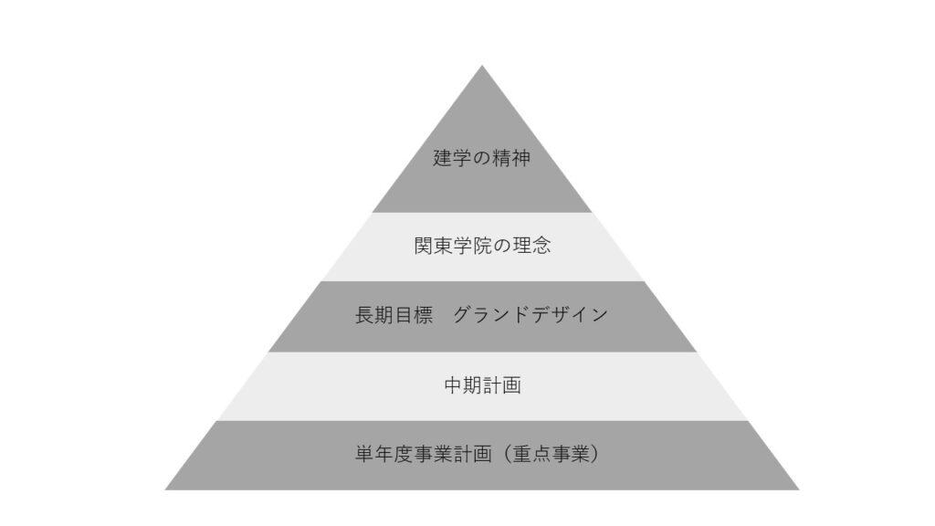長期に亘る学院の方針・方向性を示している「関東学院グランドデザイン」の下に、5年間の具体的かつ戦略的な中期計画を設定しています。