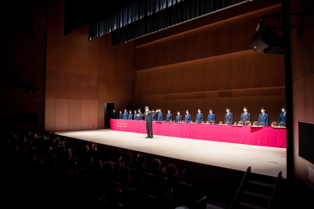 テンネー記念ホールに近隣関係者などを招いた式典には、横浜市の山中竹春市長、横浜市会の清水富雄議長が来賓として登壇。また、本学の卒業生でもある小泉進次郎衆議院議員も登壇し、新キャンパスの展望を述べられました。