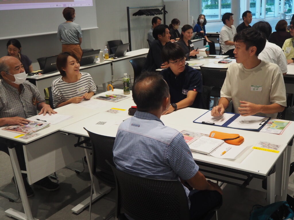 後半はグループトーク。2人の話を受け、参加者たちが得た「気づき」について、グループに分かれ意見交換を行いました。意見交換後は各グループの代表者から発表があり、「地域との関わり方を改めて考えるようになった」、「つながりが広がることで子育てを地域で行っていく意識が生まれてくることに気づけた」など石井教諭、三谷准教授の話から強く感銘を受けていた様子でした。