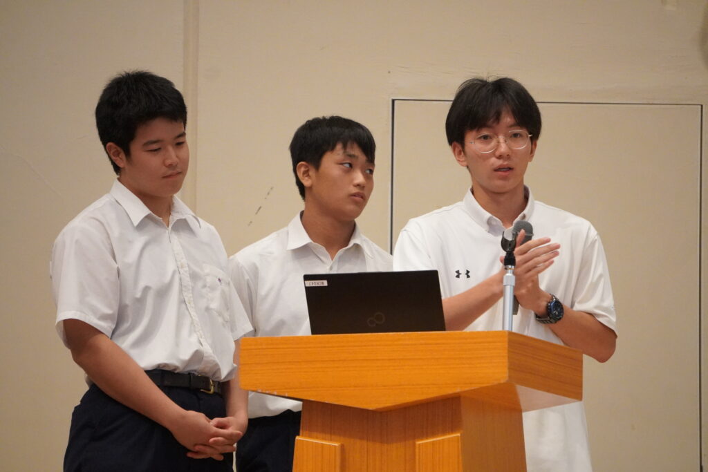「生物の水質浄化作用」をテーマとした生徒たちは「高校の学びでは、先生がテーマを設定して実験器具もすべて準備されていますが、この探究実験ではそれらを自分たちで準備し、考察をまとめなければいけなかったのでとても大変でした。ですが、学会発表のようなイメージで発表することができて、とても良い経験になりました」と笑顔で話しました。