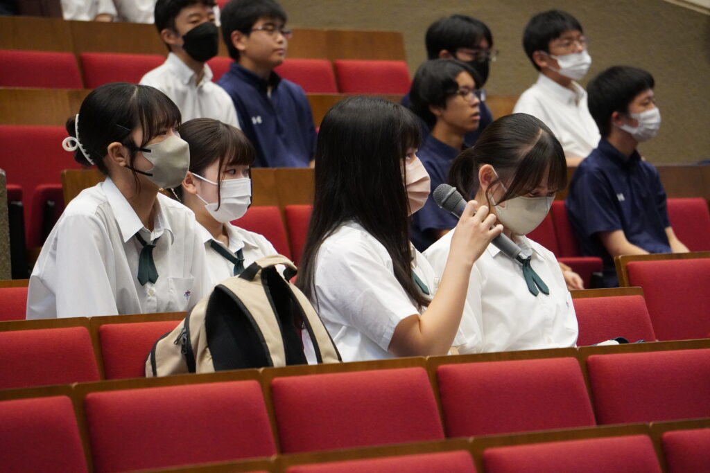 また海老原教授は、4月はじめの講義を振り返りながら「私自身の研究にも活かせるのではないかと、皆さんの研究成果を非常に興味深く聞かせてもらいました。大学に進学し社会に進出しても、考えることや新しいことを知ることの楽しみを感じながらこれからの人生を歩んでほしい」とメッセージを贈りました。